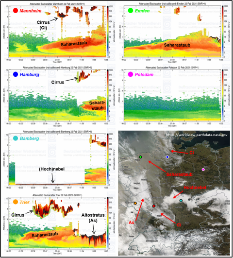 2021年2月はアルジェリアで発生した砂嵐が、大西洋を越えて西・中央ヨーロッパに向かい、22日月曜日にドイツに到達しました。
