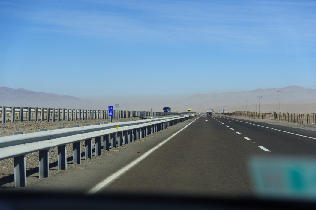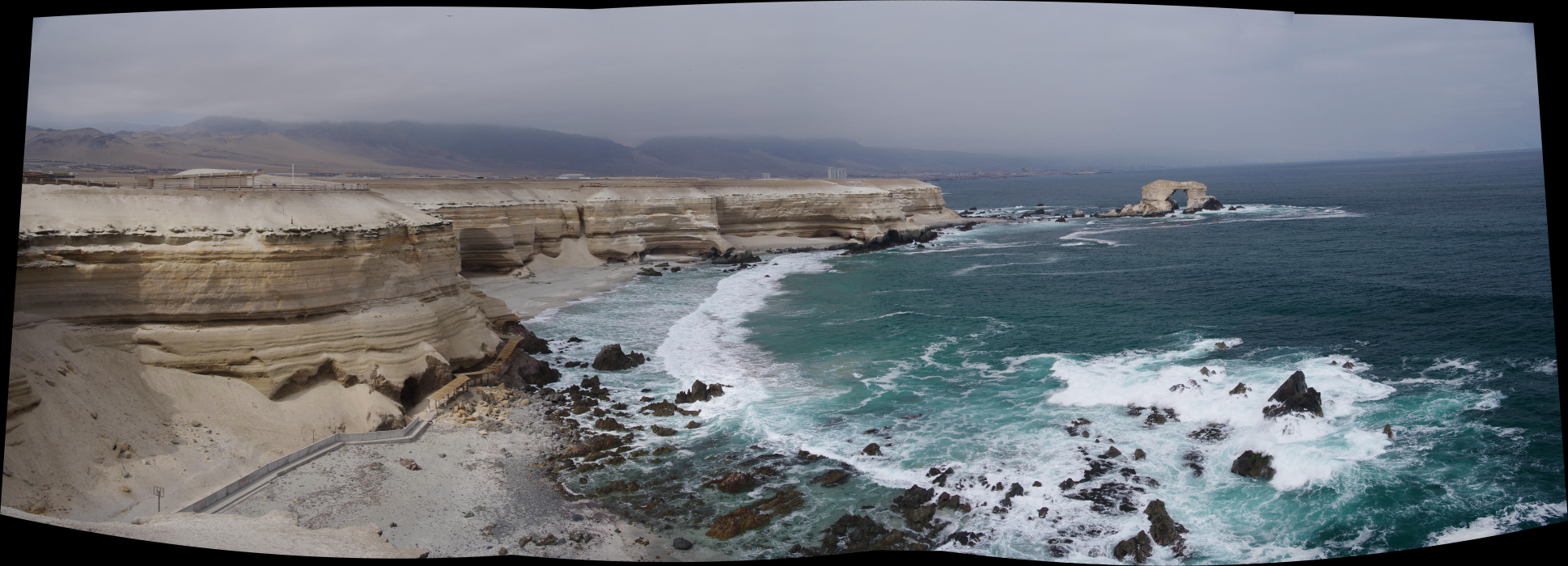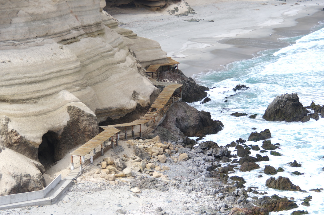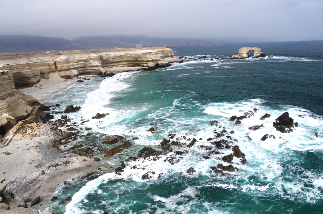 アタカマを後にして、アントファガスタに向かいます。サンチアゴ迄1800km。3日掛けて走ります。 アントファガスタよりもっと南に移動したかったのですが、この町を出ると250km先迄宿泊出来る場所が全く無いので、行きに寄れなかった所に寄りながらゆっくり走りました。 数日前に走って来た道を逆に走ると、又違った風景に遭遇します。 アントファガスタでは町に入らず、唯一の天然記念物「ラ・ポルターダ」を見てきました。
