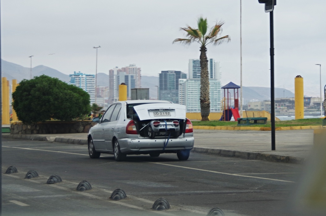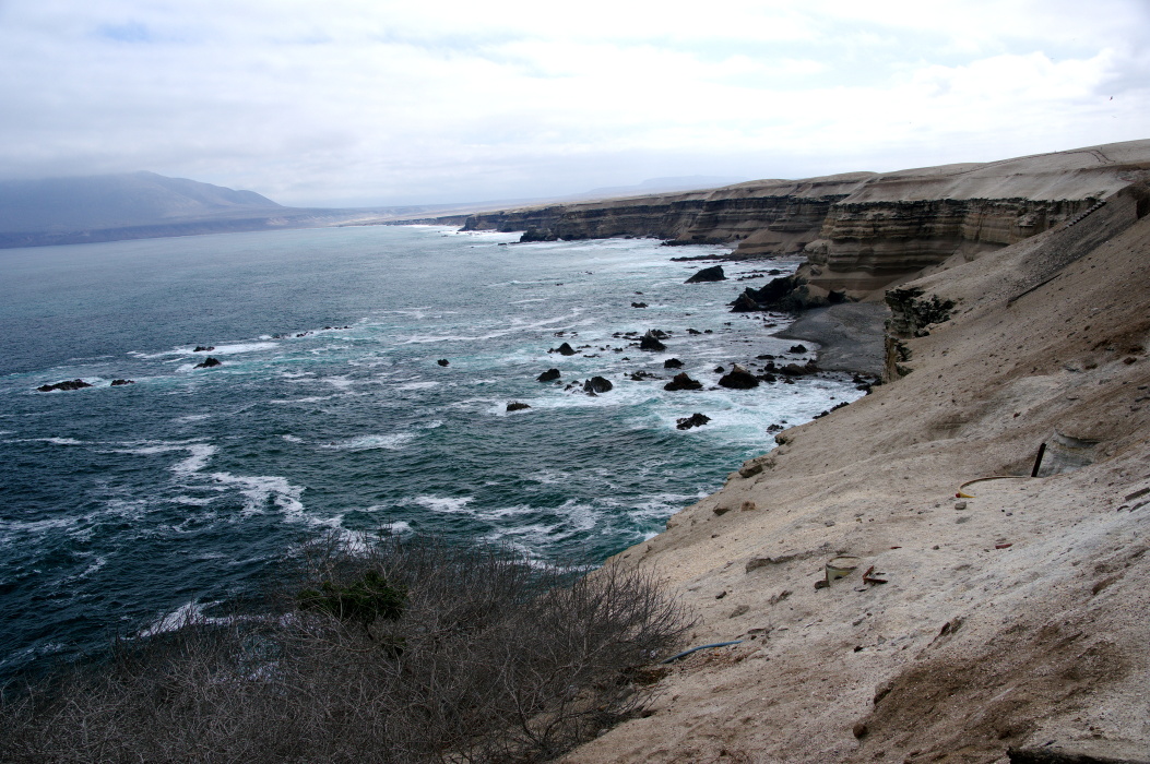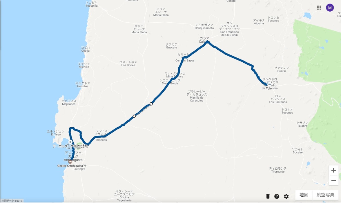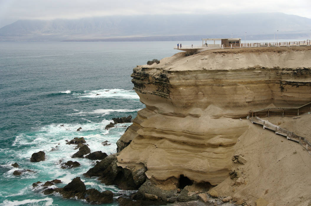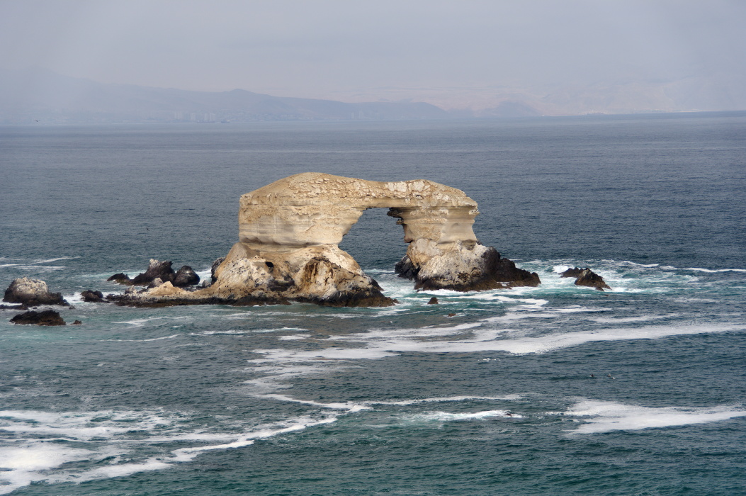 アタカマを後にして、アントファガスタに向かいます。サンチアゴ迄1800km。3日掛けて走ります。 アントファガスタよりもっと南に移動したかったのですが、この町を出ると250km先迄宿泊出来る場所が全く無いので、行きに寄れなかった所に寄りながらゆっくり走りました。 数日前に走って来た道を逆に走ると、又違った風景に遭遇します。 アントファガスタでは町に入らず、唯一の天然記念物「ラ・ポルターダ」を見てきました。