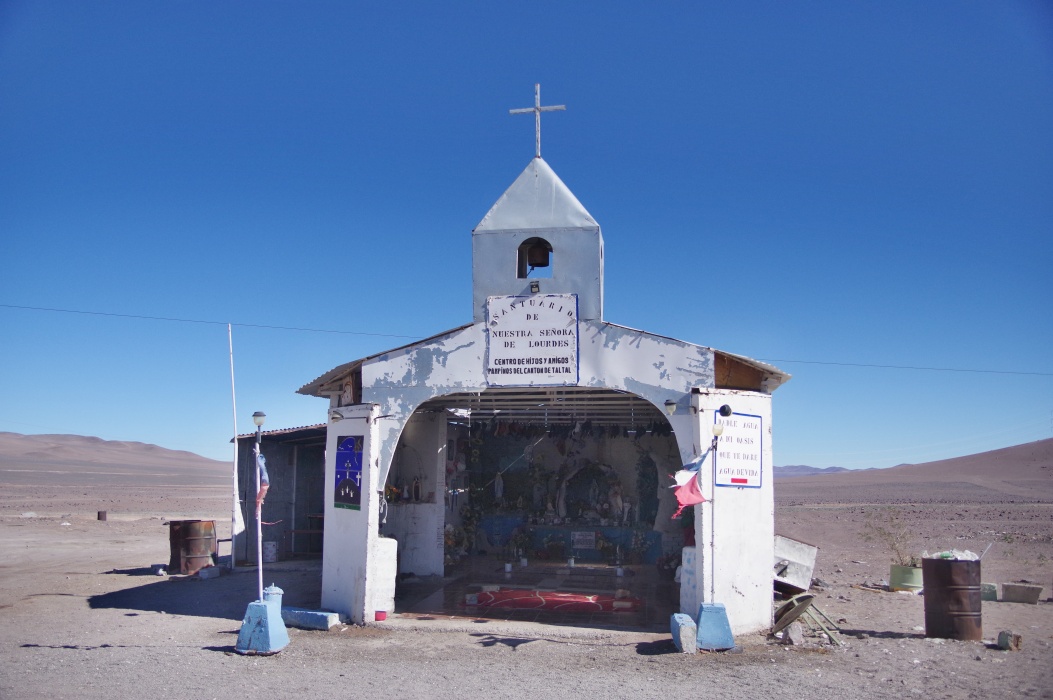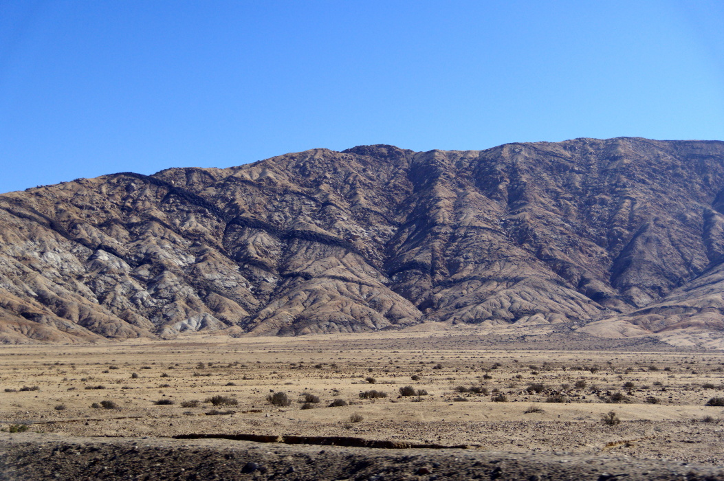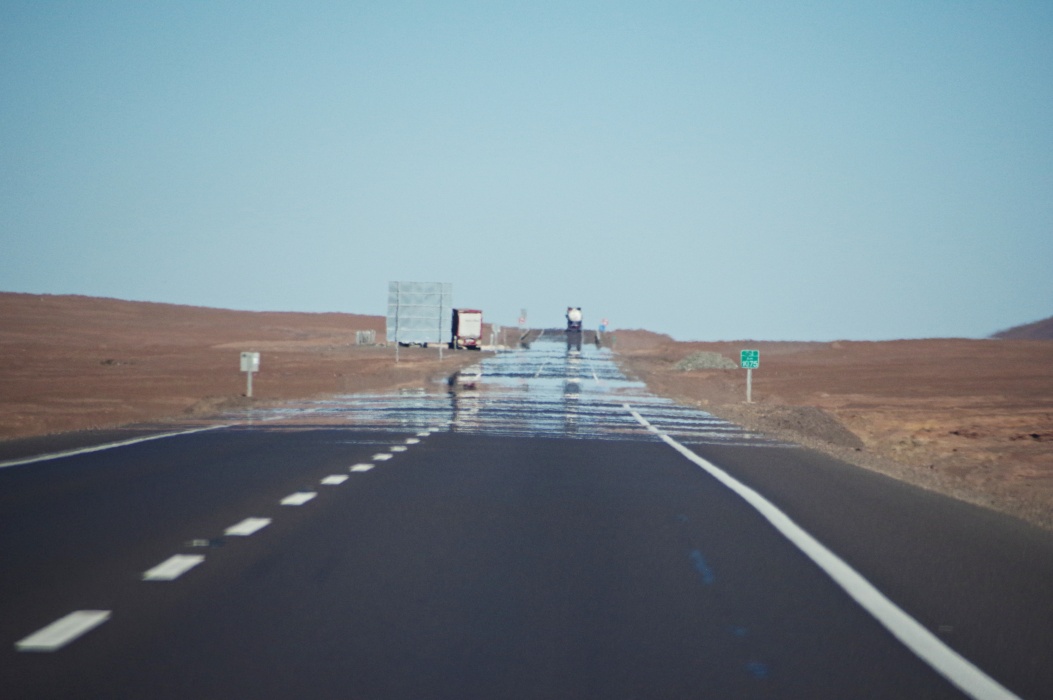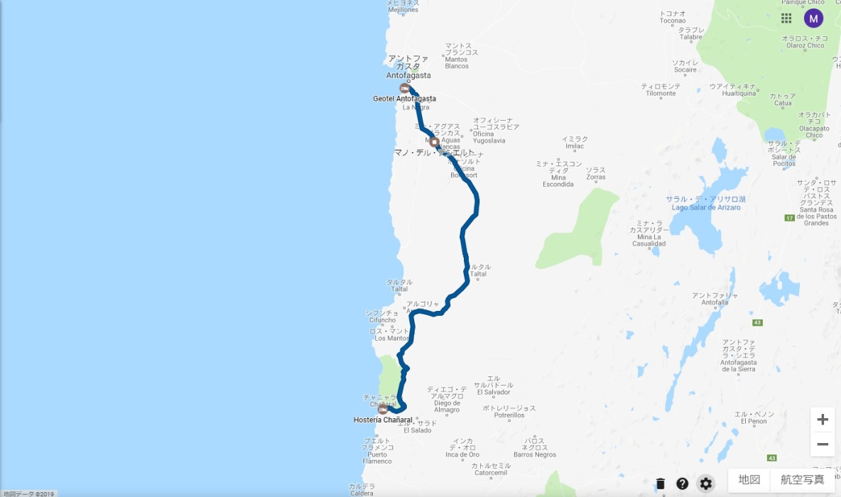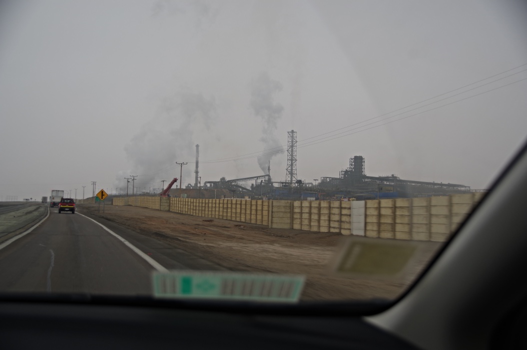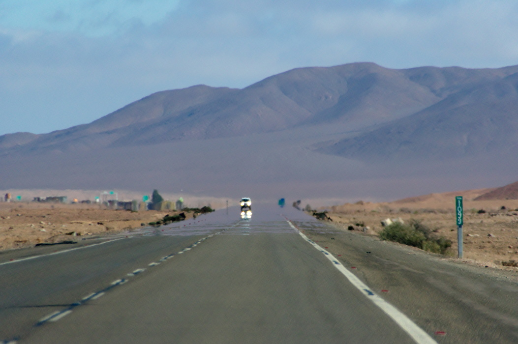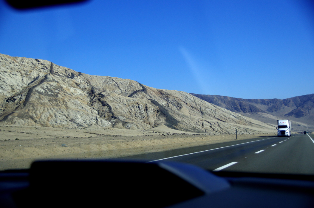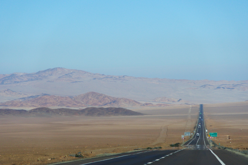 更に南へ向かいます。 行きはパラナル天文台を見る為に一号線を走りましたが、帰りはパンアメリカン・ハイウェイを走ります。 アントファガスタのスモッグを出ると、冬の青空が広がります。 途中で見れるものと言ったら大きな手のオブジェ「マノ・デル・デシエルト」だけです。 この日はひたすら砂漠の中を走りました。