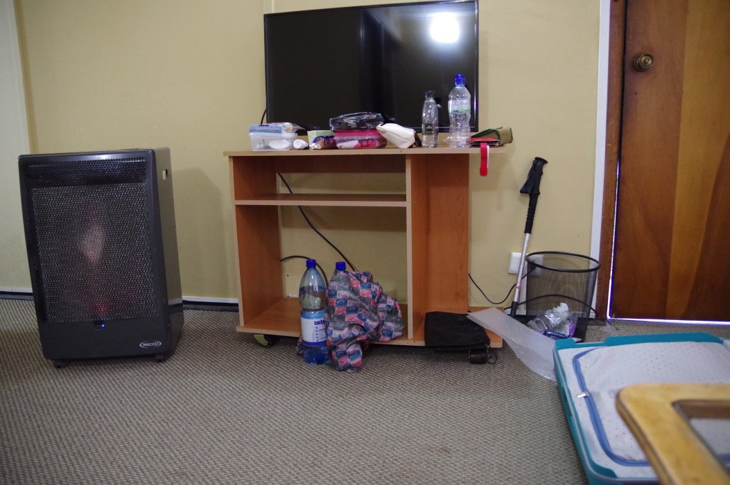サンチアゴの空港を出て、先ずは北へ向かいます。 日食観望地迄600km。三日しか無いので、観光はしないで出来る限り走りました。 到着したロス・フィロスはヨーロッパとは想像付かない様な家が立ち並ぶ小さな町でした。 見つけたB&Bはドイツ人が経営している施設ですが、中身はチリの家屋です。 チリでは暖房は贅沢品だという事が分かりました。