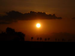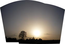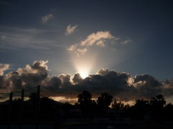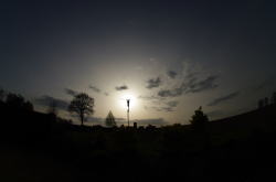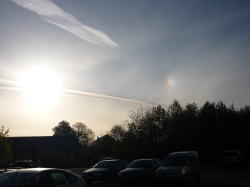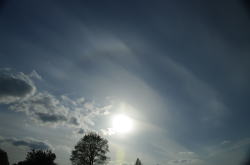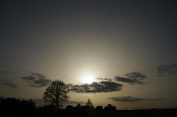2010年4月18日 | 朝から快晴。午後になってからうす雲が出だす。 午後になってから一部の空港で飛行禁止令が解除された。 日没直前に撮った写真には光輪が写っていた。花粉光輪と思ったが、独特の回折環が無いので火山灰によって出来たアエロゾルが原因かもしれない。 |