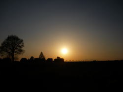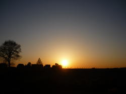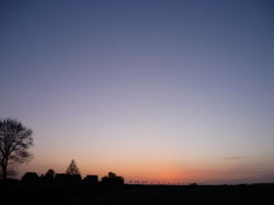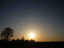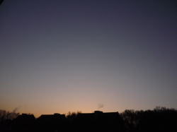 2010年4月16日 | NRWでは午後17時頃まで曇り。その後ゆっくり晴れ間が覗き、夜は快晴。 空は絹を被せた様な色。雲の間からはビショップの輪が見えていた。 日没後は紫光を期待していたが、火山灰が低空飛行しているので見栄えのする夕日にはならなかった。 |