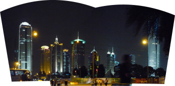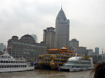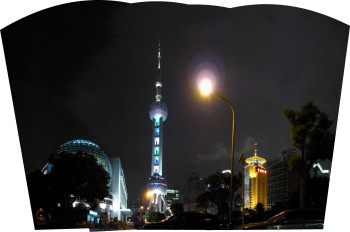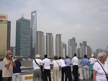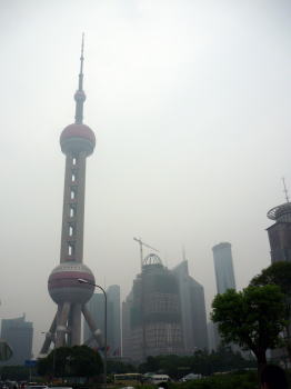 人口1400万人の上海は、昔は漁業を営む小さな村でした。。 今では中国第三の都市に発展し、一キロ平方辺り3000人が住んでいます。 バスで回りながら町並みを見ていると、東京と似ているにはビックリ。 道路標識や看板が中国語でなければ、東京と区別が付かない様な気がしました。 写真の外難(Wai Tan)エリアは上海で最も発展した場所です。 黄浦江(こうほこう、Huangpu River)に沿って、 高層ビルが建ち並び、夜になるとネオンが灯り、大変幻想的です。 左の東方明珠電視塔(とうほうめいじゅでんしとう、Oriental Pearl Tower)はテレビ等ですが、 467.9mのアジア一の建築物です。 |