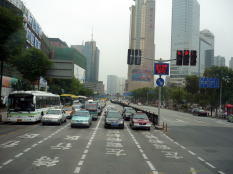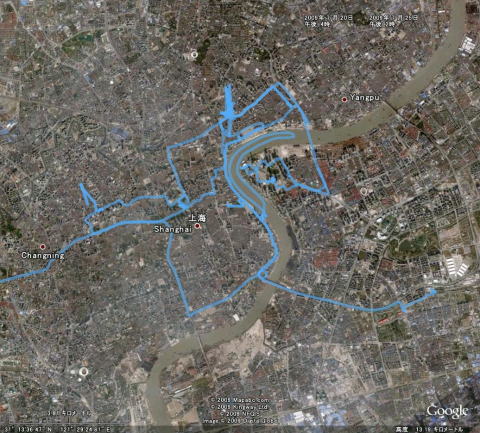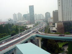 日本の首都高を走っているような気分になりました。上海は右側通行です。