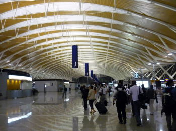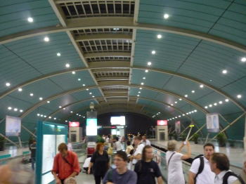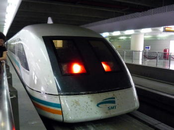 夜、空港へ向かう際に、トランスラピッドに乗りました。 ドイツ・シーメンズが開発したリニアモーターカーです。 昼間は時速430kmで走るのですが、夜と悪天候の際は300kmしか出しません。たった30kmの距離を7分で走ります。 途中対向車とすれ違うのですが、ドーンと音がして何かが窓の向こうを通り過ぎて行ったのは分かるのですが、視覚での確認は出来ませんでした。 |