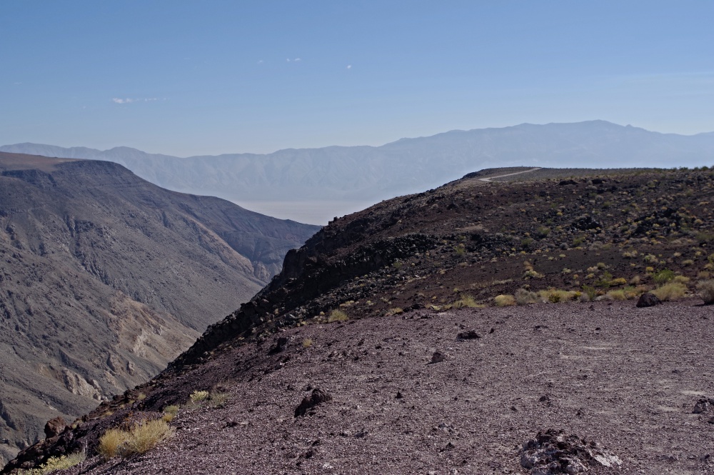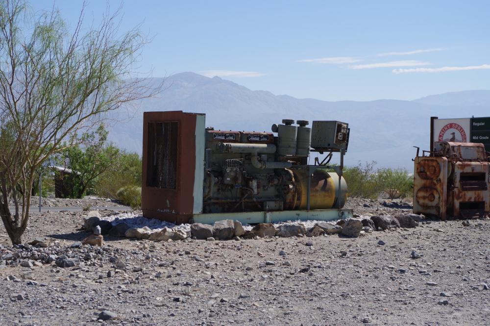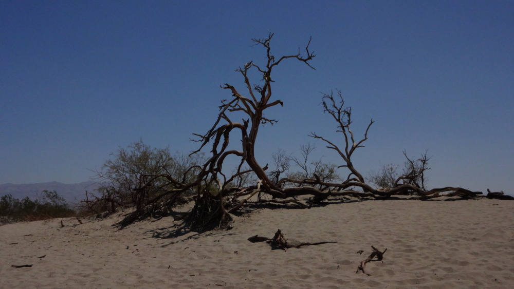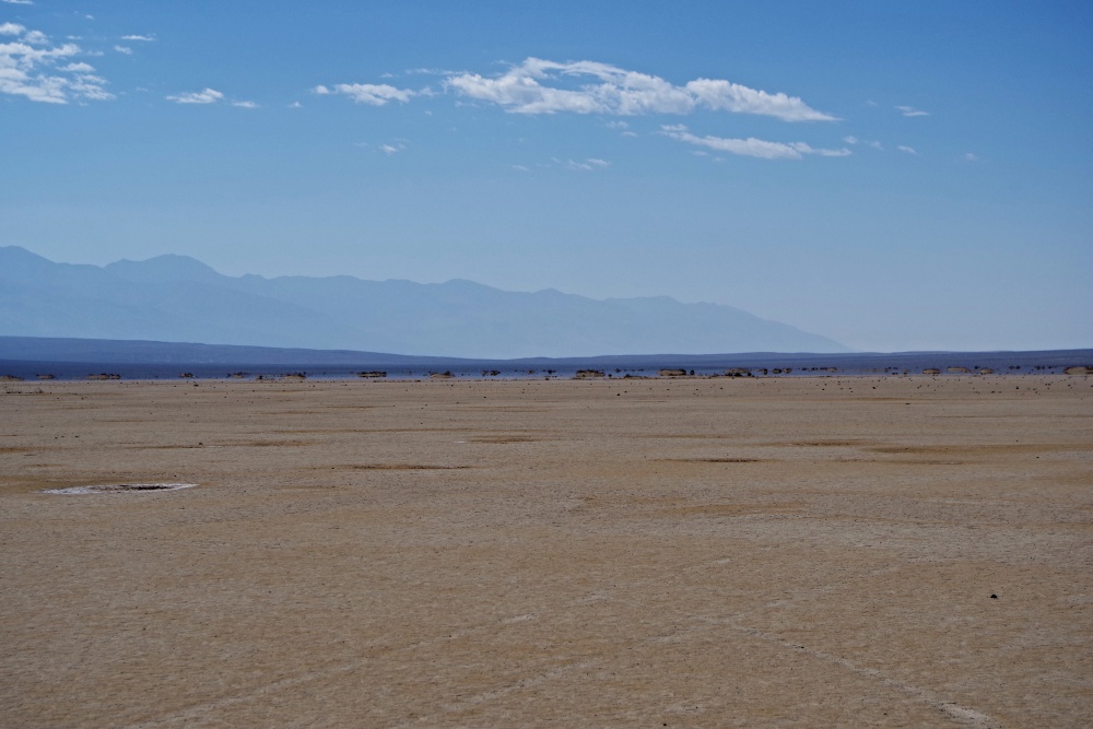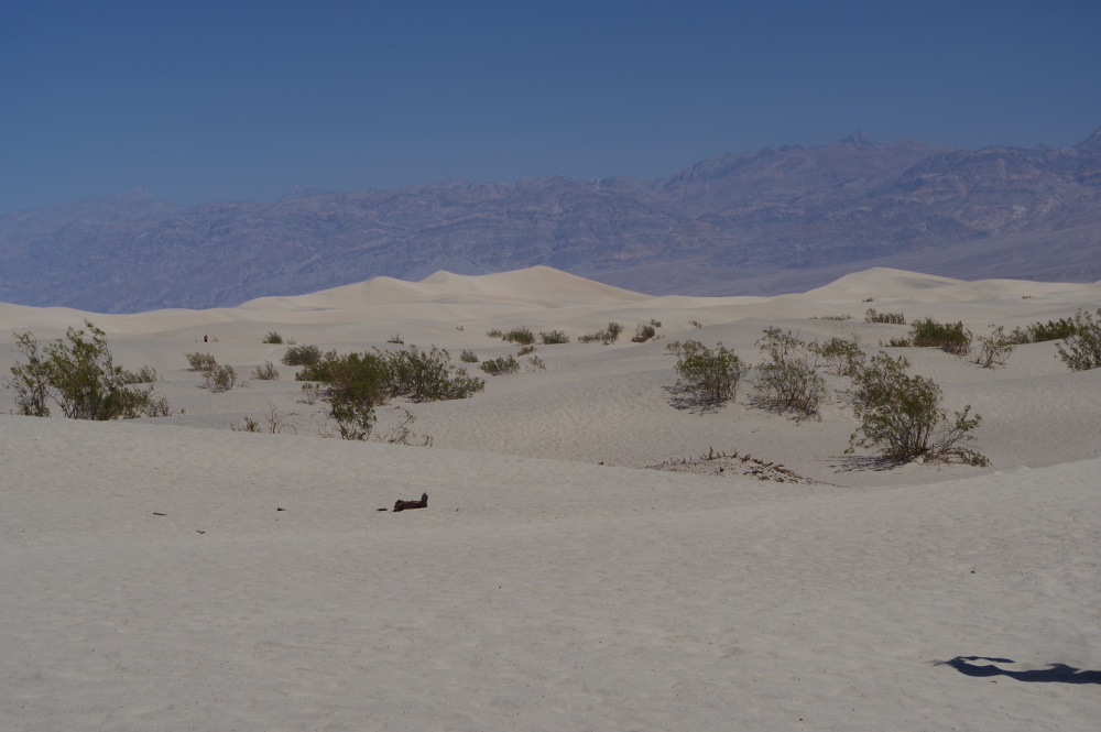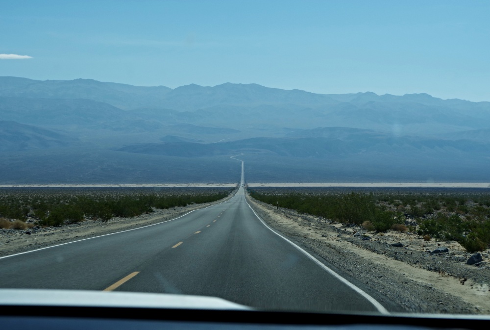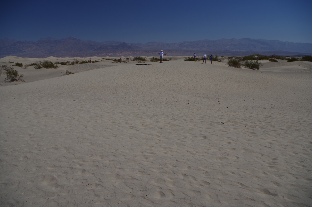 デスバレー。年に一度雨が降るか降らないかと言われる乾いた砂漠。はるか彼方に塩に覆われた谷底が見える。余りの暑さに負けて、見に行くのは止めました。こんなところにコヨーテが。あんなに痩せちゃって、かわいそう。谷底を横切る一直線の道路。猛暑。10分車から降りて写真を撮れば十分。逃げるが勝ち。からから…カラカラ…からから…火山灰と溶岩の山デスバレーは車の耐久度をテストする場所でも有る。外からは何処の車か分からない様にカモフラージュ。摂氏43度。砂丘暑い時は砂丘への立ち入りは禁止。からから…UFOで有名なエリア51。エイリアンの土産物屋。