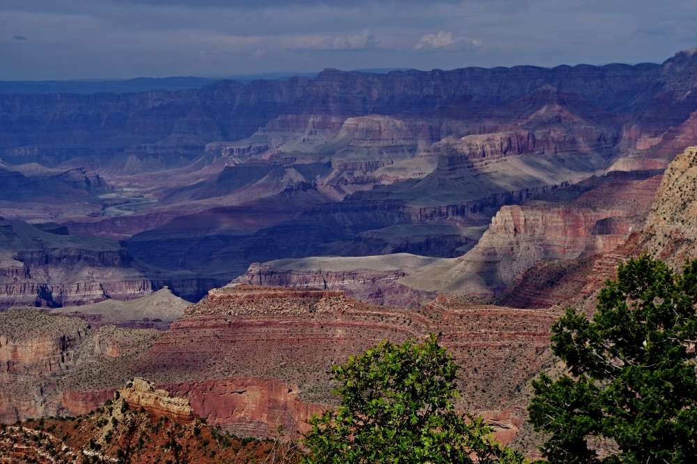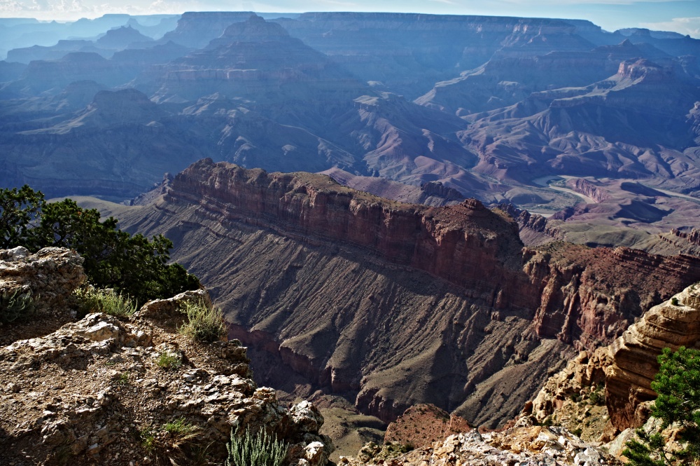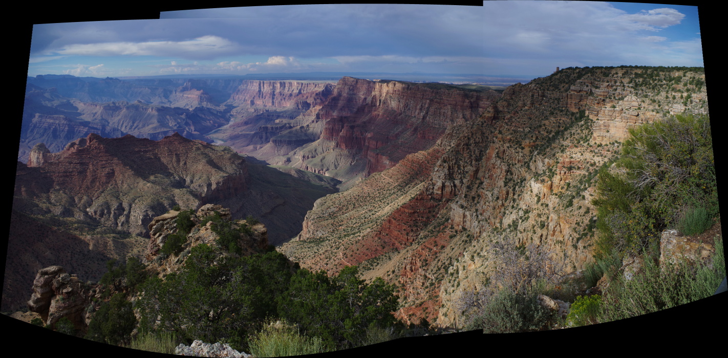 フーバーダムから更に3時間30分。グランドキャニオンの南リムへ向かう。なんだか雲行きが怪しくなって来た。道路際には駐車場が一杯だから右へ回れとの標識が立っている。結局グランドキャニオンの駐車場に入れず、東リムだけ観光。残念。日が低いせいか、コントラストが良い。デサートビューのタワー。東リムが一望出来る。出来れば全部見たかったなぁ。やっぱりシーズンオフに又来よう。キャニオン一帯にほのかな香りが漂っている。何かなと思ったらこの花でした。