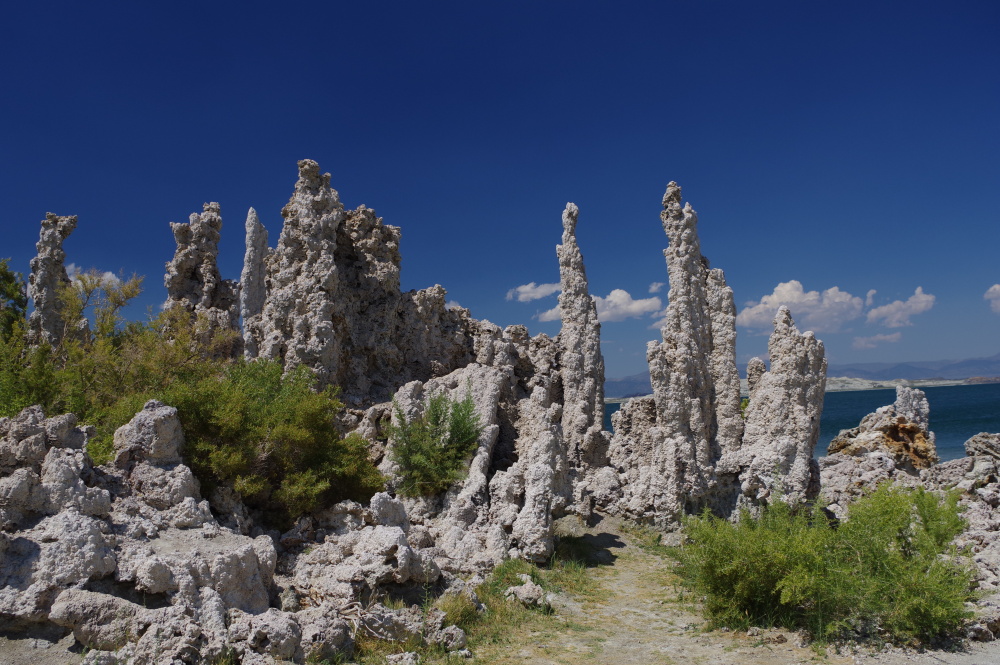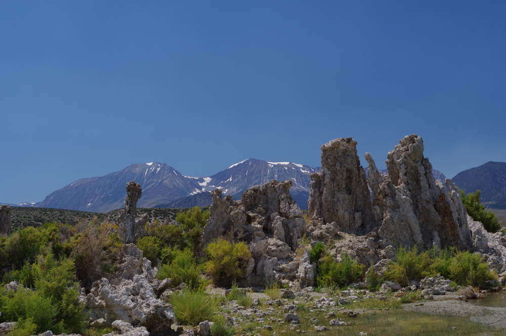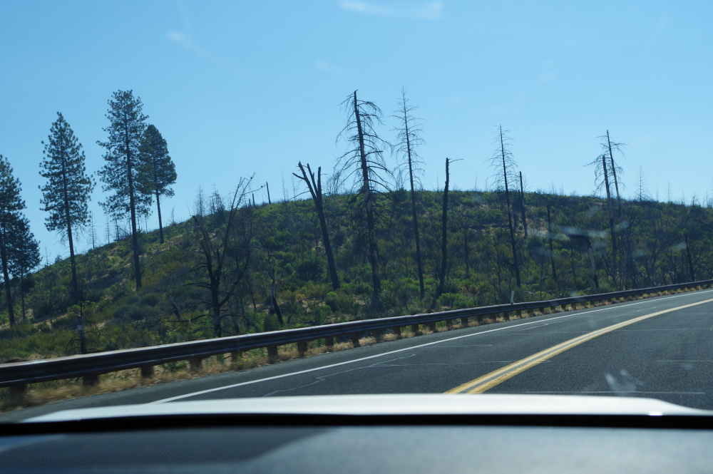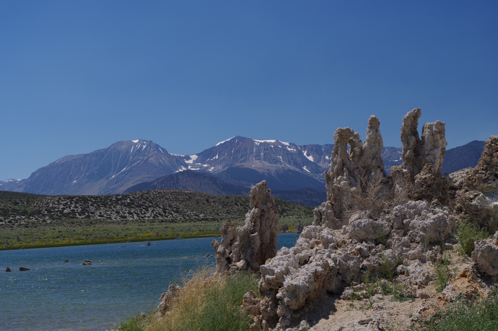 サンフランシスコを出発して走ること約4時間。ヨセミテ国立公園に到着。山火事で真っ黒になった木が立ち並ぶ。マーセド川を挟んで、南北両側に石灰岩の岩盤が聳え立つ。739mのヨセミテ滝。ゆっくり見ていたかったんだけど、凄い人と車でそれどころじゃなかった。もっと観光客が少ないときに来ようっと。その翌日はモノレイクへ。山火事を防ぐための山火事。おかげさまで、大展望台が煙に包まれてしまった。氷河につるつるに磨かれた岩盤。ノルウェーのフィヨルドみたい。未だ雪が残っている。子供達が雪合戦。きれー!!モノレイクに到着。あちこちの石塔群が立ち並ぶ。塩分は海のほぼ十倍。それでも動物が生息している。80万年前に誕生した北アメリカ最古の湖。数年前に無くなった同好会の友人のHPに載っていた景色。あの人もここに立ったんだな。摂氏40度。涼しければもっと歩き回りたかったんだけど。シエラネバダ山脈。乾いた景色は、緑の景色より地球の活動をより強く思わさせる。