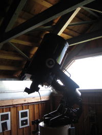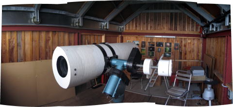 MEADの設置されている小屋 | 45cmのニュートンとその小屋。屋根はもちろんスライド式で開けられる。 |