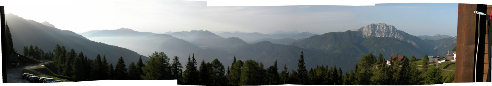 標高1800mの高地にあるエンベルガー高原。 ここはハイキングとスキー客で賑わう観光地です。 今回宿泊したホテルには天文台が設置されていると言うので, ドイツのアマチュア天文家の間でも大変有名です。 どういうところか一度見てみたかったので、ここに宿を取りました。 部屋は南西方向にパノラマが観望できるベランダ付き、2食付で48ユーロ。 場所も大変静かで満足でした。 唯一の欠点は1800m迄くねくねと曲がりくねった急勾配の道を10kmも走らなければならない事。 これは当然か~。 |