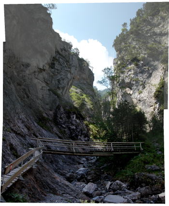 エンベルガー高原からドラウ谷へ下りたベルグ町の郊外に有ります。 1998に危険な場所に木橋が架けられ、ハイキングというより、ちょっとした散歩道になっています。 ロッククライーマーが石灰岩の壁を登っていました。 |