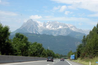 サルツブルグの手前にも3000m級の山がそびえ立つ | ホーエンヴェルフェン城が高速道路から見える |