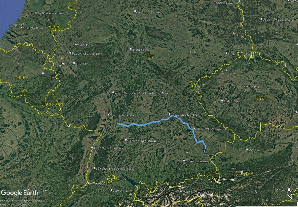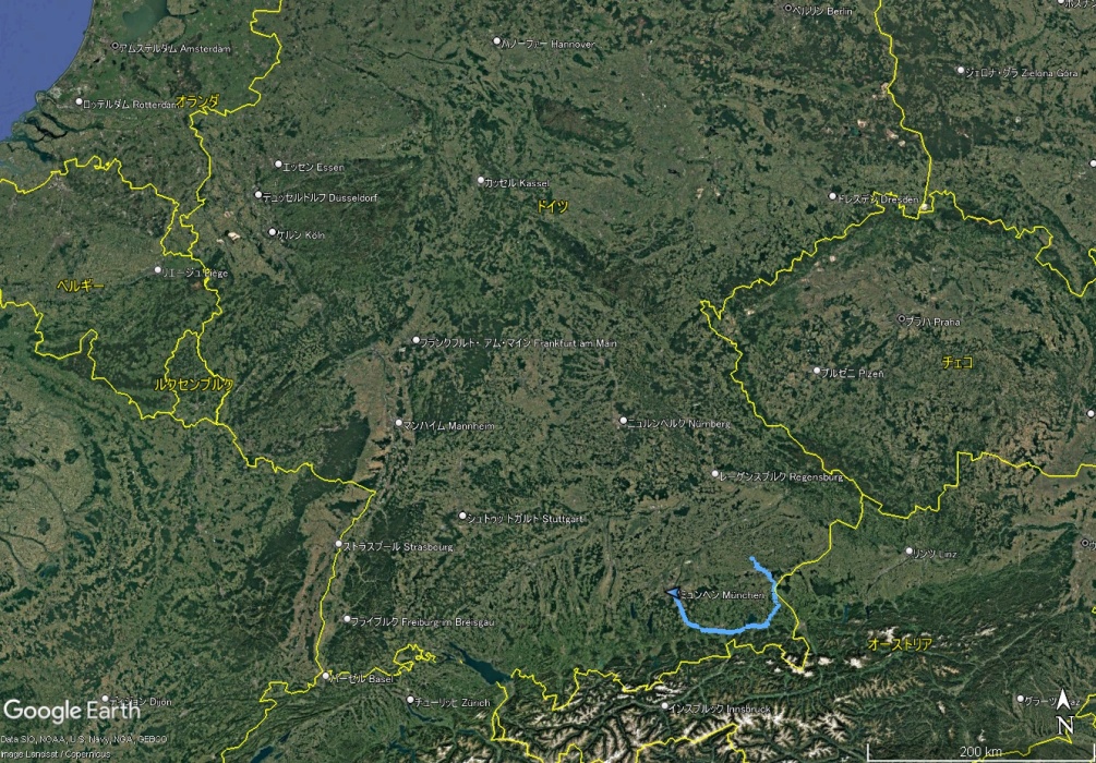 バイエルン迄約800km。行きはシンスハイムで博物館を見学するので、大回りします。