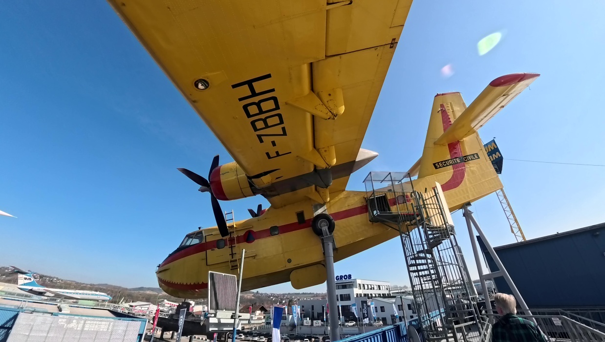 カナダの航空機メーカー Canadair によって開発された消防飛行艇です。1967年に初飛行し、湖や海から水をすくい上げて森林火災の消火に使用されました。世界で初めて消防専用として設計された航空機で、各国で長年活躍しました。2005年にシンスハイム技術博物館に設置され、現在は内部も見学できる展示となっています。