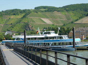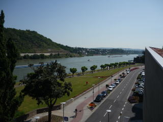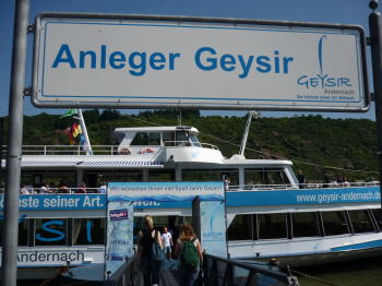 博物館から間欠泉迄は船で15分程。ライン川から町を眺めます。