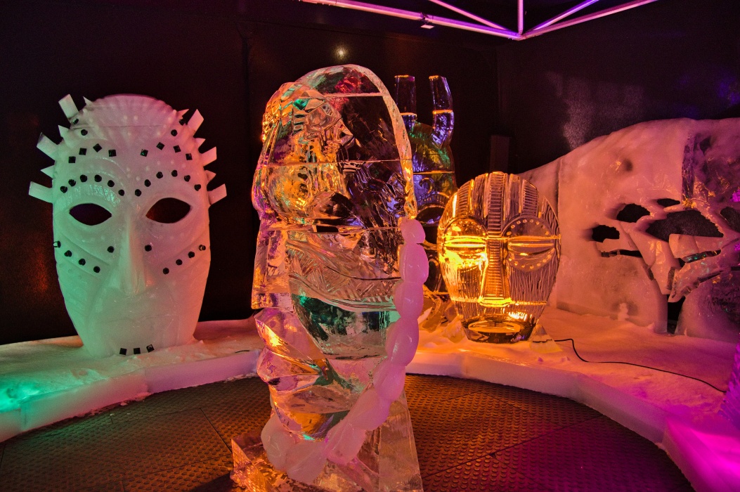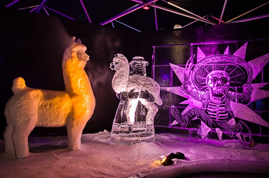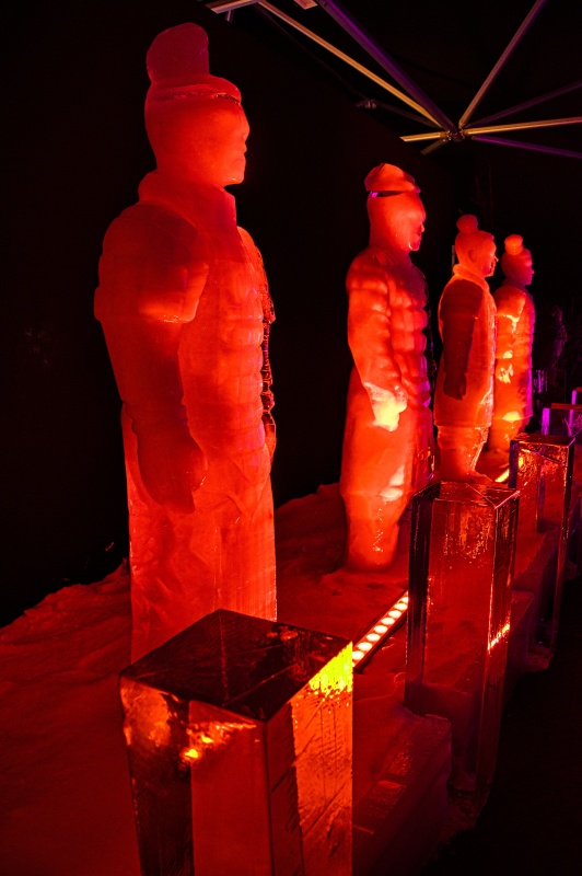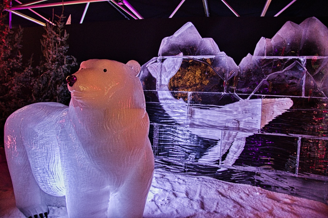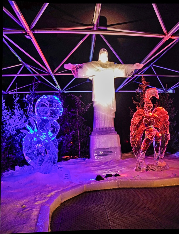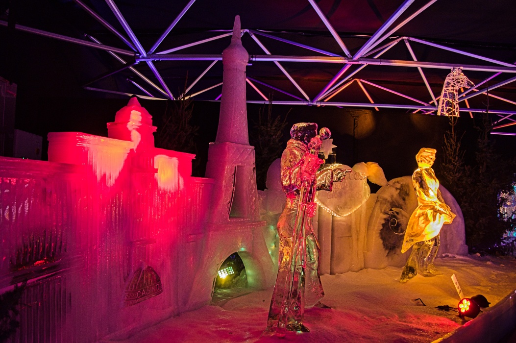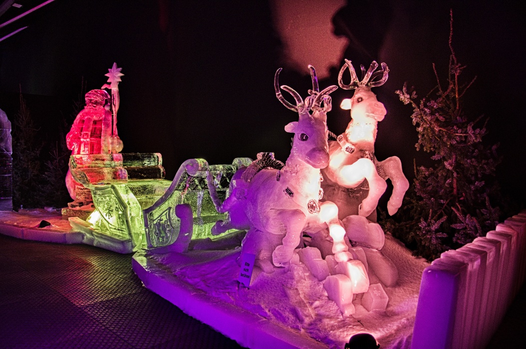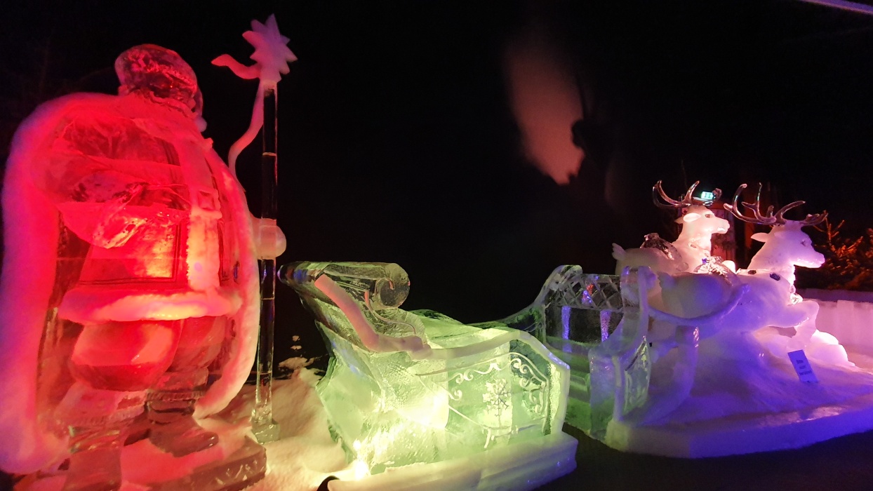 ノルトライン・ヴェストファーレン州オーバーハウゼン(Oberhausen)で世界最大級のアイス&スノー彫刻展が開催されています。 35人の国際アーティストがおよそ200トンの雪と約500個の異なるサイズの氷のブロックをチェーンソー、ドリル、ノミ、アイロンなどを使って造られた氷像が、-8℃迄冷却した会場に展示されています。 毎回テーマを変えている展示会ですが、今回のテーマは「世界旅行」。 様々なシーンやクリスマスの作品、有名な建造物、歴史的人物が展示されてます。