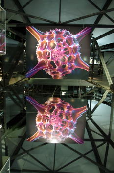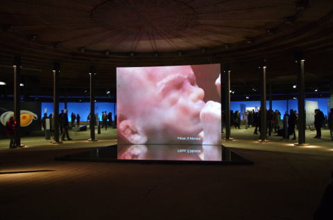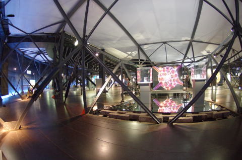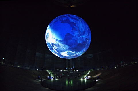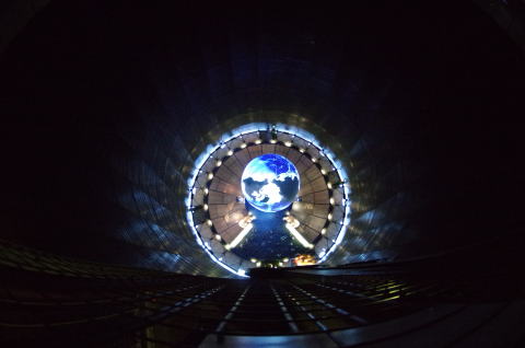 展示会のハイライトはドームに浮かぶ直径20mの地球です。
