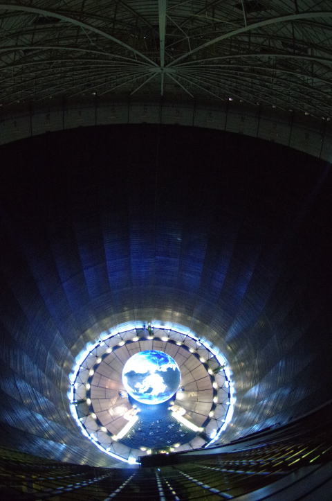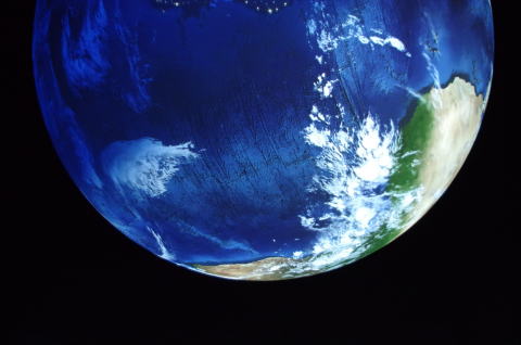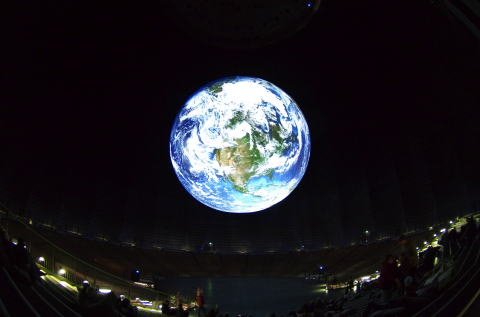 ハイライトの地球。四季の変化が20mの真っ暗なドームに映し出されます。