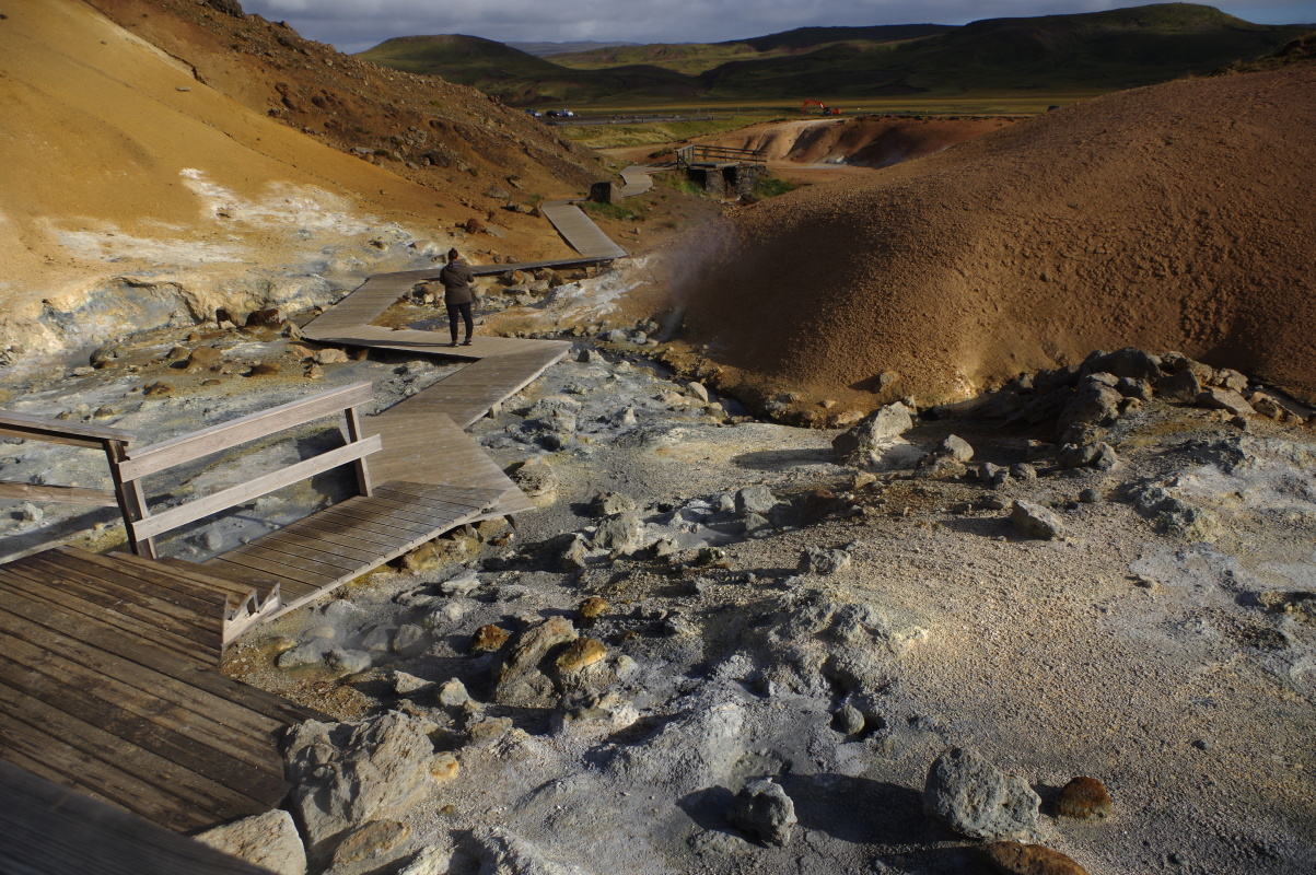 又アイスランドに来ました。 18日間で4150kmを完走。Jimmyはちょっと小さかったなので、今回はスズキのVitara。レイキャネス半島のヨーロッパとアメリカを結ぶ橋私が橋を支えています!ドでかい地熱発電所もくもくと上がる湯気。すごい勢いで噴出しています。ビデオも見てね。あち!!レイキャネス半島岬。夏は渡り鳥でいっぱい。溶岩と灰の層が何重にも重なっている。ガオー!鳥のパラダイスと言われているが、見たのはかもめ一匹。去年もここでハンバーグを食べたなぁ。Seltún Geothermal Lake 地獄谷くさーい。足跡だらけ。観光は自然破壊だ。私もその一人だけど…。Krysuvikurberg. 溶岩の層がすごい。Selatangar. 昔の漁師の家が残っている。またまた雨です。レイキャネス半島からスネフェルネスに向かう。雨…。風が強い。Landnámssetur Íslands ボーガネスに有る民族博物館。中は写真禁止。ぜひお勧めの博物館。スネフェルネス半島へルナーホテルの側に有る博物館。こんな靴寒そう…。羊の皮で服を作る。旧民家ホテルの食堂に有る飾り。素敵。Vatnshellir Cave 溶岩洞 中は真っ暗。懐中電灯で照らされると溶岩の表面がいろいろな色に光る。鍾乳石ならぬ、溶岩石。とってもカラフル。Lóndrangar 灯台から望むと無限に遠く感じる。Lóndrangar霧虹Saxhóll Crater クレーター中を覘く。スネフェルネス氷河を見上げる。Laugabekka. Arnarstapi. 溶岩石を組み合わせて作った漁師の像。Basaltsäule am Arnarstapiスネフェルネス半島を望む。Snæfellsnesjoküll教会Raudfeldgargja 最も狭い峡谷。RauðakúlaKolgrafafjörður 火山灰の山Fródárheidi 高台から見下ろす。Kirkjufell 絵に描いたような風景。でも滝と山の間を国道が通っている。すごい数のカメラマン。場所の取り合いをやっている。写真に夢中になるとがけから落ちますよ!さらに北へ。Hraunfosser 又来ました。又雨です。温泉Reykholt 古い教会新しい教会雪を被ったフィヨルド。秋も深くなると、色も鮮やか。きれい。又虹。Þingvellir - Oxararfoss オキサラーフォスÞingvellir ヨーロッパとアメリカの境目はアイスランドを横切る。灰皿Nesjavellir Geothermal Plant 巨大な地熱発電所首都レイキャビックまで続く23kmの送水パイプライン。温度は3度しか落ちないとか。ÞingvallavatnStrukkur Geysir すごい数の観光客。去年の数倍は居る。GullfossLangjökullSeljalandsfoss 雹が積もっている。コーヒーショップが有る! 大自然の中のこんなもの要らない!Gljúfrafoss お隣の滝。皆中に入って要ったけれど、私はパス。更に南へ。溶岩層が灰の層に載っている。Sólheimajökull去年の写真と比べると、氷河が移動しているのが分かる。Eyjafjallajökull 2006年の爆発した火山。小さな火口が並ぶ。タイヤの跡が付いている。誰がこんなことをするんだ。Eldvatn スカフタ氷河からの大量の解け水が岸を削っている。翌日には橋は閉鎖された。Katla 有名な火山墜落した飛行機 US Navy Dakota DC3 (2016年3月にゲレンデは閉鎖されました。ただ見学するだけじゃ気がすまない観光客が多すぎたようです。))Skógafoss アイスランドの滝は氷河期が過ぎて、地盤が50m持ち上がった為に出来た。HaifossÞjófafossThe Saga Center Hvolsvöllur 民族博物館Eyrarbakki 古い民家が並んでkる。Urriðafossアイスランドは地熱を使って野菜を作っている。地熱発電所地熱発電所の博物館Mitsubishi-Hitachi Power Systems Group が建設に参加。Raufarhòlshellir Cave 道端にぽっかりと開いた溶岩洞。電灯も点いていないので、入る時は要注意。前に進むのは大変。もっと明るい懐中電灯が有れば、カラフルな色を楽しめるのに。Arnarker Cave. またまた溶岩洞。錆びたはしごで中に降りる。けが人出たこと無いのかな?中は凄い状況。CafeHallgrímskirkju ハットルグリムス教会 教会の天辺までエレベーターで昇るとレイキャビックが一望出来る。公衆トイレウーマンパワーSólfar (Sun Voyager) レイキャビック国立博物館階段の下にヒーターを埋め込む。Perlan ペルトラン 熱水貯水場屋上からの眺めもいい。Harpa ハルパ コンサートホールウェールウォッチング 鯨は見当たらない。どこにでも居るものなのかな?溶岩砂漠の中にポツンと小さな教会が建っている。空港の近くの古い灯台。今は使われていない。