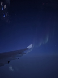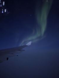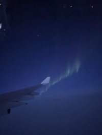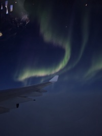薄明中の飛行となり、KP値も7迄上がりアラスカ上空で大変奇麗なオーロラが見えました。