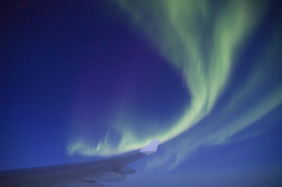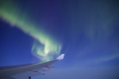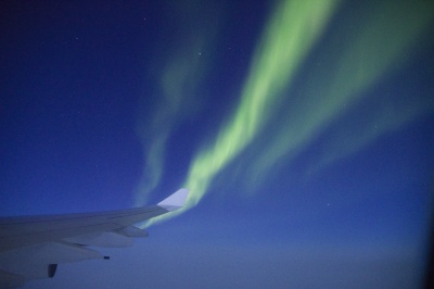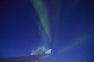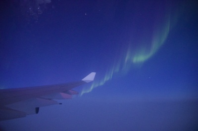 帰りは北極回りで、時期的に昼間の飛行となると思い、さほど期待はしませんでしたが、