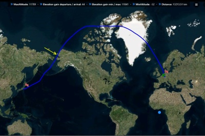 ウクライナ侵攻の為に、行きは中央アジア経由、帰りはアラスカと北極経由となりました。