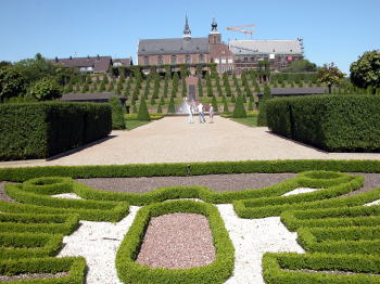 イタリア風階段式テラス式庭園を持つカンプ修道院は、1123年にケルンの大司教フリードリッヒ一世によってドイツ初のシトー会派の修道院としてニーダーライン地方のカンプ町に建てられました。21.7ヘクタールの庭園は1999年に再建され、ライン地方のサンスーシーとして2005年にライン・マース庭園芸術街道に登録されました。 現在も8人のフルタイム庭師が毎日手入れをしているそうです。