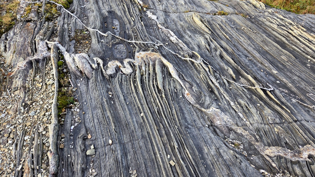 ここの基盤岩は片麻岩(gneiss) と呼ばれる変成岩で、約17〜18億年前に形成されました。