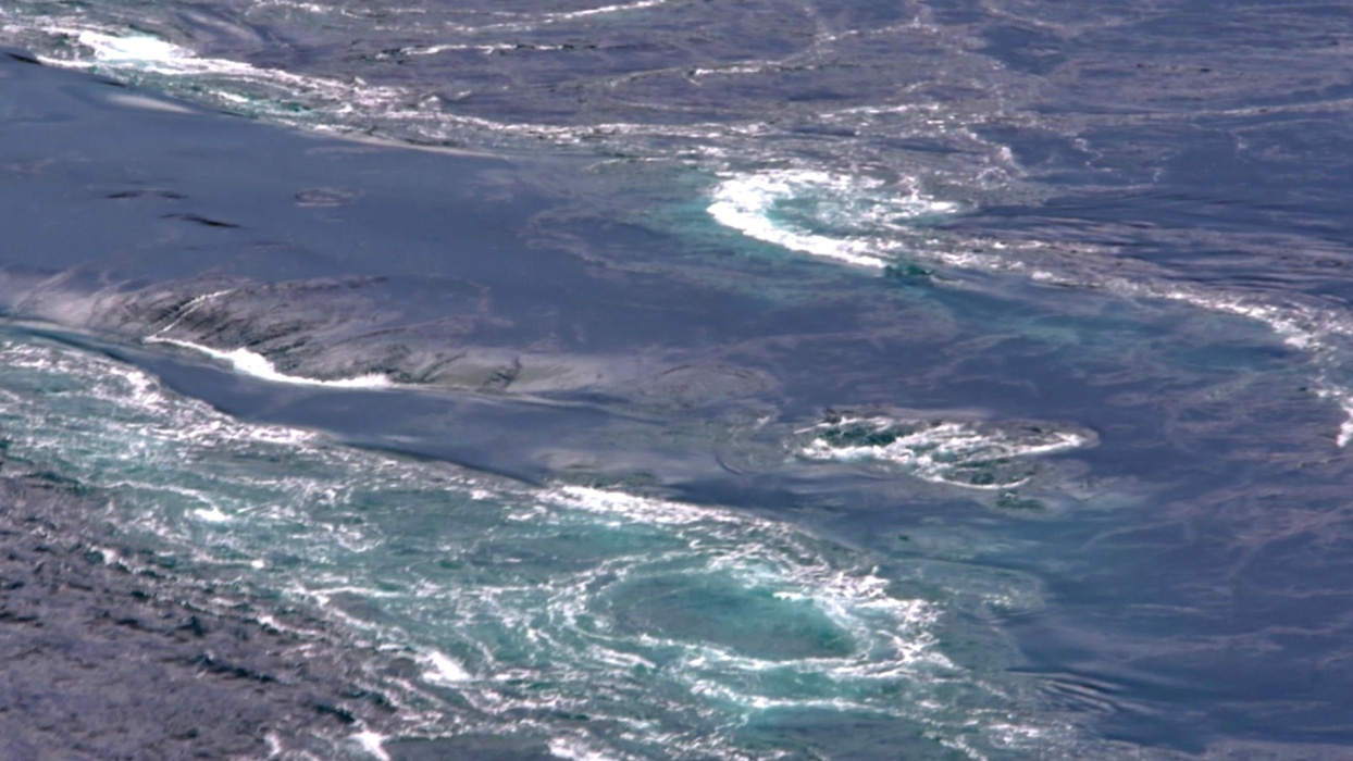 最も狭い部分は幅約150メートル。海峡の最下部は深さ約 26 メートル。世界でも有数の強い潮流が発生する場所です。