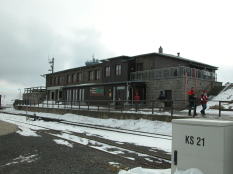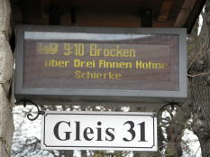 今回は意地でもブロッケン博物館迄行くと決め、登山電車に乗り込みました。 雨は降らなくても霧が濃く、町からは山頂が見えません。 山頂に到着した時は全く何も見えませんでしたが、お昼を過ぎた頃から霧が晴れ出し、念願の山頂を一望することが出来ました。 もう少し晴れていてくれれば最高だったのですが。 ![]() ヴェルニゲローデ駅 |