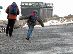 山頂では相変わらず冷たい風が吹き、時々雪が舞っていました。