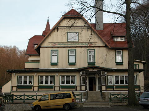 お城の庭の一角に有るこじんまりとしたホテルです。 普通の部屋を取ると林しか見えない裏庭側にと回されます。 そんなにやたらと高いホテルでは無いので、大部屋の有るアパートを取るのもいいかもしれません。 中は綺麗に改装され、食事も安くお勧めです。 公式サイトへ |