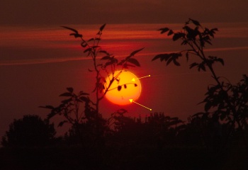 08.06.2004 | 金星日面通過 第二接触 Venustransit 2. Kontakt 日面通過時の金星と水星の大きさ比較 Venus und Merkur Größenvergleich be im Transit |