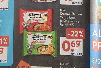 23.02.2025 | 安スーパーに広告に載った出前一丁 Jap. Ramen auf Aldi Prospekt |