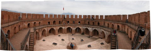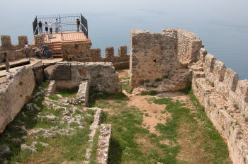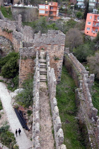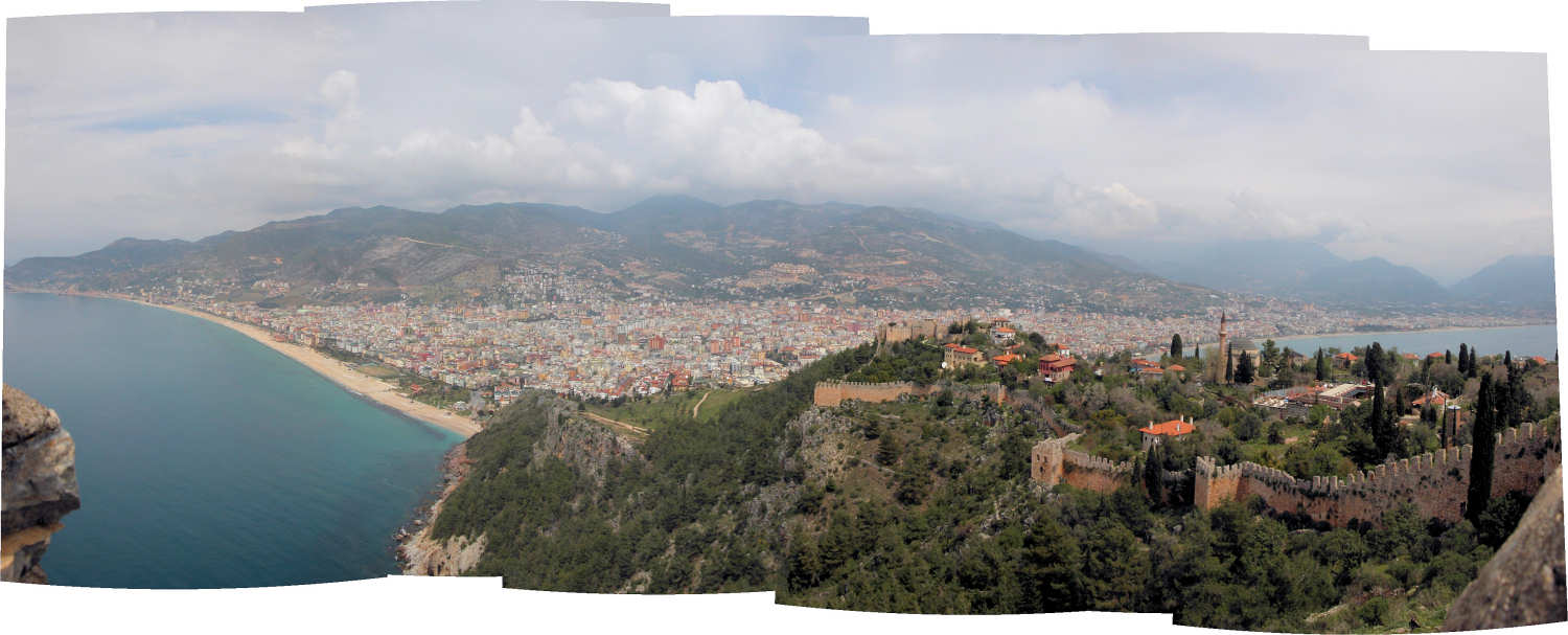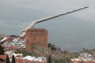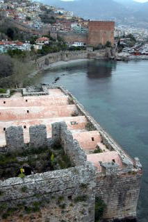 シデから更に100km程東へ行った所にアラーニャの町があります。 小さな半島は防衛に適しており、紀元2世紀に海賊の手によってこの城が築かれました。 アラーニャという名前は当時のサルタン、カイクバットに正式に付けらられました。 >この町は北ヨーロッパ人の観光客で賑わう所です。トルコでドイツ人人口が1万人と最も多い町でも有ります。どこへ行っても独語が通じ、ドイツ人向け診療所も有りました。 さすがに、ここでは日本人を見かけることはありませんでした。 |