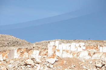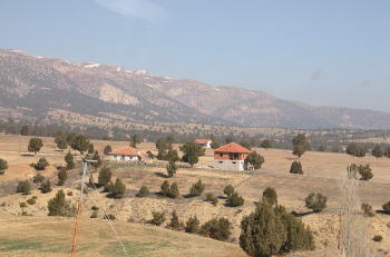 乾いた大地が見渡す限り続きます。 この当たりは地中海の沿って連なるトロス山脈の一端 です。季節的に未だ寒いせいか、あちこちに雪が残っていました。 この当たりでは大理石が砕石されているようです。 (写真上) それにしてもトルコでバスに乗るのは、レンタカーを借りるのと同じように怖いです。タイヤはまっ平ら、街中は時速100km、高速道路を140kmで、それも道路の真ん中を走ります。赤信号や横断歩道なんて有ってないような物。 これも一つの生き方かなぁ、と思いました。 |