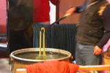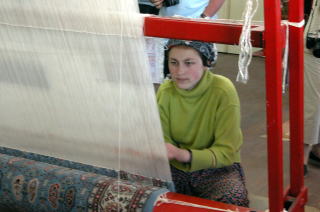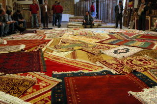 現地で借りたレンタカーが余りにも酷いので、シデからパムックカーレの往復640kmはとても耐えられないと判断。 そこで急遽一日のバスツアーに変更しました。 その途中でお決まりのじゅうたん屋に立ち寄り、製造工程を見学しました。そこまでは良かったのですが、その後はディーラーが買えとばかりじゅうたんを広げて、じゅうたん工芸がいかにすばらしいかと演説を繰り返していました。 これには全員うんざり。 日食目当てに来た旅行者には、全く受けなかったようです。 |