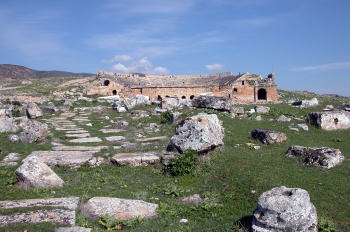 ヒエラポリス遺跡 パムックカーレの上部にある遺跡。 古代ギリシャ・ローマの都市の跡です。 アルプス・ヒマラヤ造山帯上にあるトルコは地震大国です。 この町は紀元前から発達し、何度か大地震に見舞われてきました。 何度か復興を繰り返してきましたが、1534年に起こった地震で崩壊してからは廃墟となっています。 |