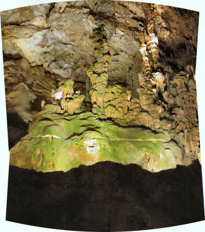 クエバ・デル・カネローブレ 鍾乳洞 Cueva del Canelobre アリカンテから北へ十数キロのところにこの地方では最も大きい鍾乳洞が有ります。 中は最も低い所から高い所まで約100m。内部は大聖堂のようでした。 一つ一つの鍾乳石がマリア様がキリストを抱いているよう、だとか、これはどこかの大聖堂に似ているとか、 私には余りピンと来ない説明ばかり。 かなり写真を撮ってしまったけど、後で撮影禁止だと言う事が分かりました。笑。 ここでは一日中鍾乳石に照明を当てているので、青苔が猛威を振るって、無残な姿になっていました。 駐車場から乾いた土地を見下ろす。 拡大するには写真をクリック。