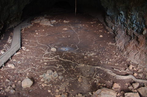 入り口に大木が立っていて、その根は溶岩洞の中へと永遠に続きます。 | ![]() |