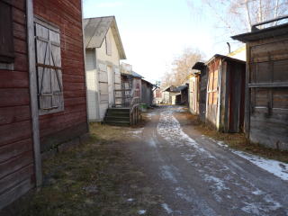鉄鉱山で栄えた町を再現したオープン博物館。 当時の家屋を再現したものです。 夏の間は、多分中も見学出来るんでしょうね。 何処の家も新しい鍵が掛かっていました。 ここには夏の間だけオープンしているユースがあるそうです。 |