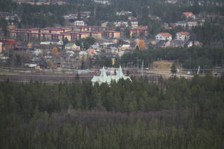 冬の間スキー場として賑わうドゥンドレッド(Dundred)自然保護地区。823mの山が有り、この山頂からはラップランドが一望出来るとか。残念ながらこの日は天気が悪く、イェリバーレがやっと見えるくらいでした。 この町は19世紀の後半、鉄と銅の鉱山で栄えました。 町の東側に有る銅鉱山は、今でも稼動している幅4kmの大きな穴を開けて採掘している露天掘り鉱山(?)です。 見学を希望したのですが、閑散期はクループで無いと先ず駄目です。 要するに、こんな時期に来る方が悪いんですよね。 |