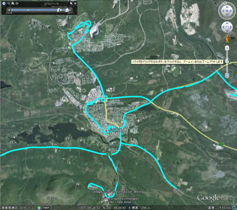 今日のルート。 道を間違えてさまよったルートもちゃんと記録に残っちゃいました。 |