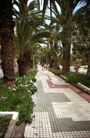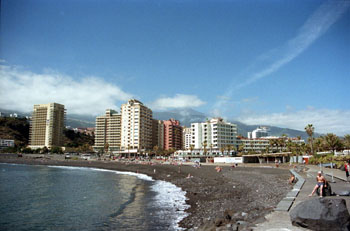 ![]() 人口2万8千人に対して観光客用ベット数は約3万。テネリファ等で2番目に大きい観光地である。。 17世紀にはワインで有名だったオロタバ町の港として栄えた町である。ワイン生産が衰え、オロタバ町の重要性が無くなり、1813年にプエルト デ ラ クルーツ町と改名された。 右:海岸へ向かう歩道 上:海岸 |