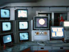 屋上に有る2枚の鏡で捉えた太陽光を真空タンクを通して地下の光学機器へ送り、地上階のコントロールルームでその解析を行う。