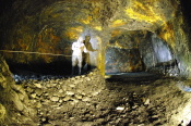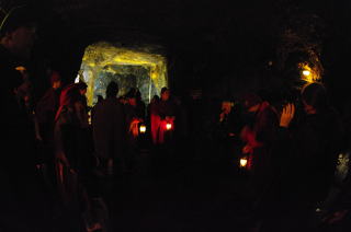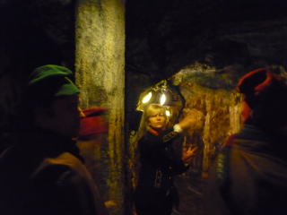 中は大変暗く、足元が良く見えません。それに天井からたれて来る水滴は鉱物を沢山含んでおり、洋服につくとシミになります。