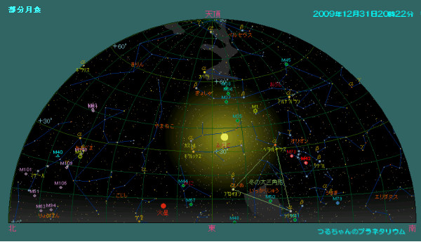 12月31日の日没直後から部分月食が起こります。 中央ヨーロッパからは全行程観望可能です。 皆既月食にはならない部分食ですが、大晦日で時間帯も良いのでチャンスを逃さないで是非観望して下さい。データは下記の通りです。 北緯50度 東経10度 冬時間 半影食開始 18:15 部分食開始 19:51 食最大 20:22 部分食終了 20:53 半影終了 22:29