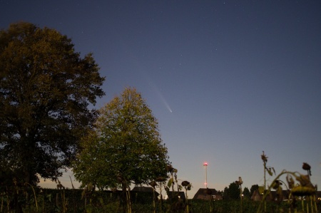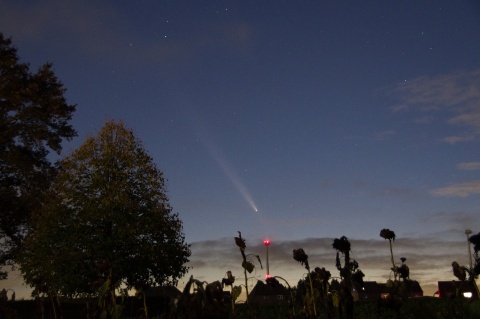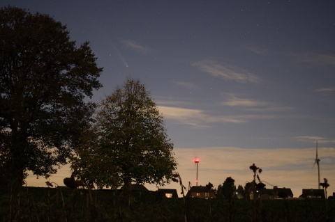 | 未だ薄明が残る西の空で、長時間露出でやっと見えてくる彗星。双眼鏡でも見つけるのは大変でした。 2024.10.23 19:37 35mm/F2,8 ISO1600 5s 写真の上にマウスを置くと、解説が見えます。 |