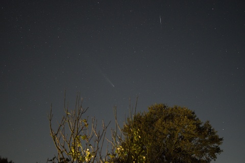 | オールスカイカメラにも僅かに尾を引く彗星が写っていました。 写真の上にマウスを置くと、拡大箇所が見えます。 | |